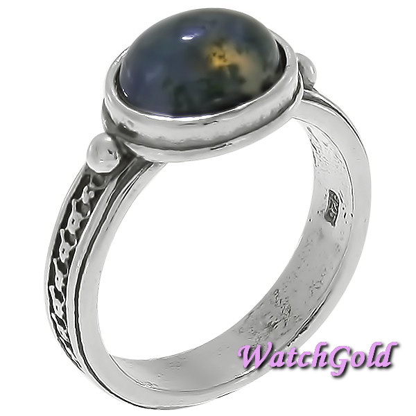 Кольцо из серебра 925 пробы, вставка моховой агат