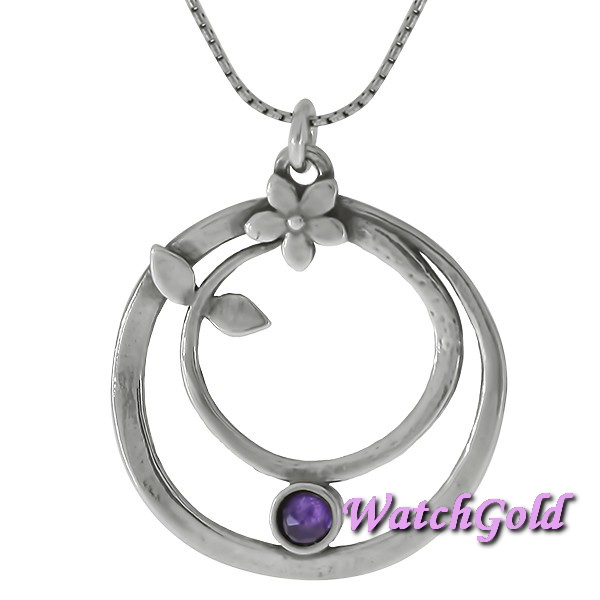Колье из серебра 925 пробы, вставка аметист