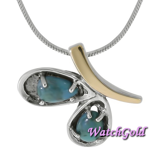 Колье из серебра 925 пробы, вставка бирюза, золото