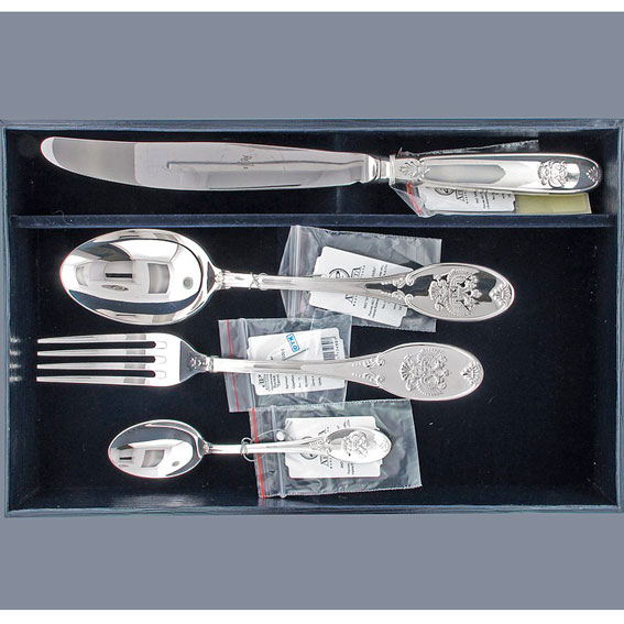 Состав набора: 4 предмета: нож столовый, ложка столовая, вилка столовая, ложка чайная